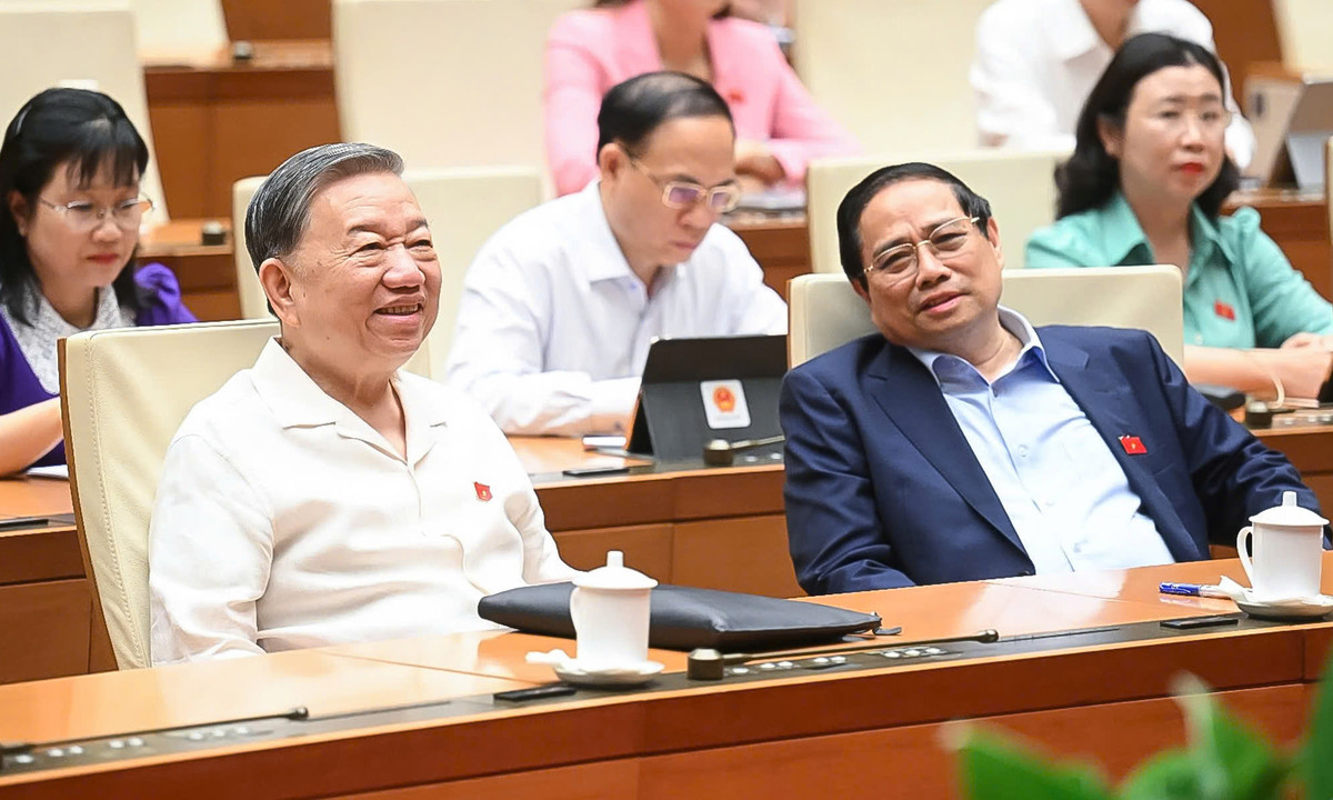 Tổng Bí thư Tô Lâm và Thủ tướng Phạm Minh Chính tại phiên họp sáng 20/6.