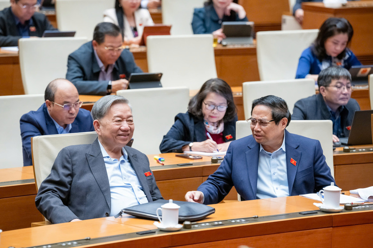 Tổng Bí thư Tô Lâm và Thủ tướng Phạm Minh Chính tại phiên thảo luận Kỳ họp bất thường lần thứ 9, Quốc hội khóa XV. (Ảnh: quochoi.vn)