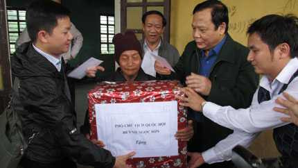 | Phó Chủ tịch Quốc hội Huỳnh Ngọc Sơn thăm, tặng quà cho người dân huyện Bắc Trà My. |