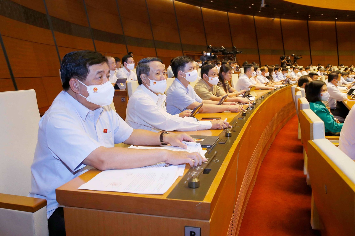 Các đại biểu Quốc hội biểu quyết thông qua Nghị quyết về cơ cấu tổ chức của Chính phủ nhiệm kỳ 2021-2026.