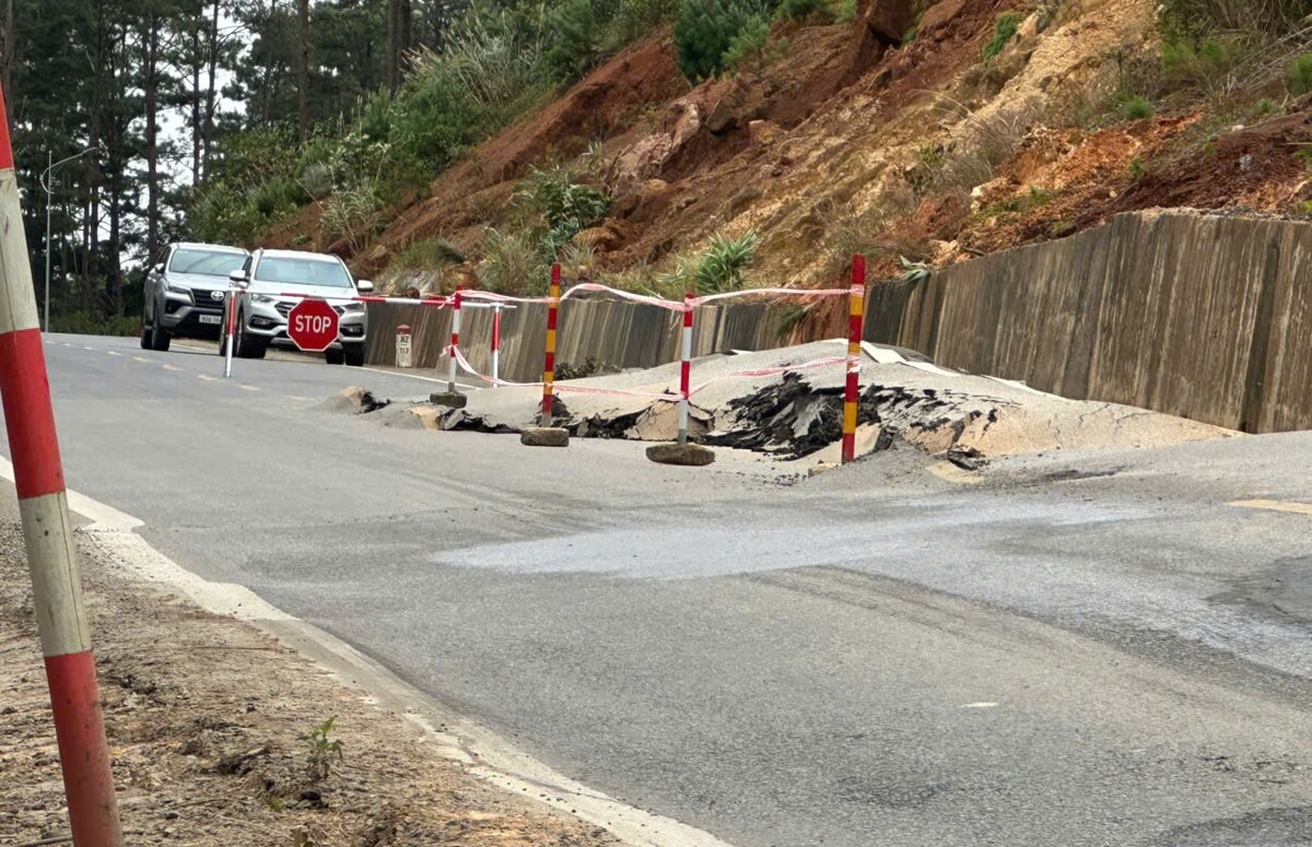 Vết nứt trên Quốc lộ 24. (Ảnh: H.V)