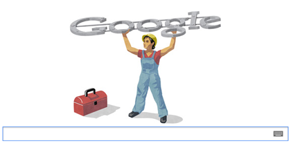 | Doodle hình công nhân mặc bảo hộ lao động trên trang chủ của Google |