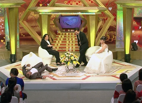 | MC Quốc Thuận đã nhiều lần phải té ghế vì bất ngờ với nỗi sợ của các anh chồng trẻ. |
