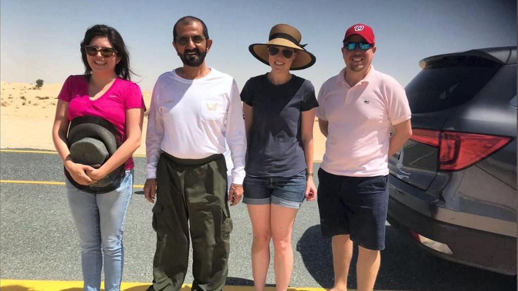 "Tôi và bạn bị mắc kẹt trên sa mạc Dubai. Chúng tôi được Quốc vương Sheikh Mohammed bin Rashid giúp đỡ", du khách người Mexico Hanna Karen Arroyo viết trên Twitter cá nhân. Kèm theo đó là bức ảnh cô và bạn mình chụp cùng ân nhân của họ.