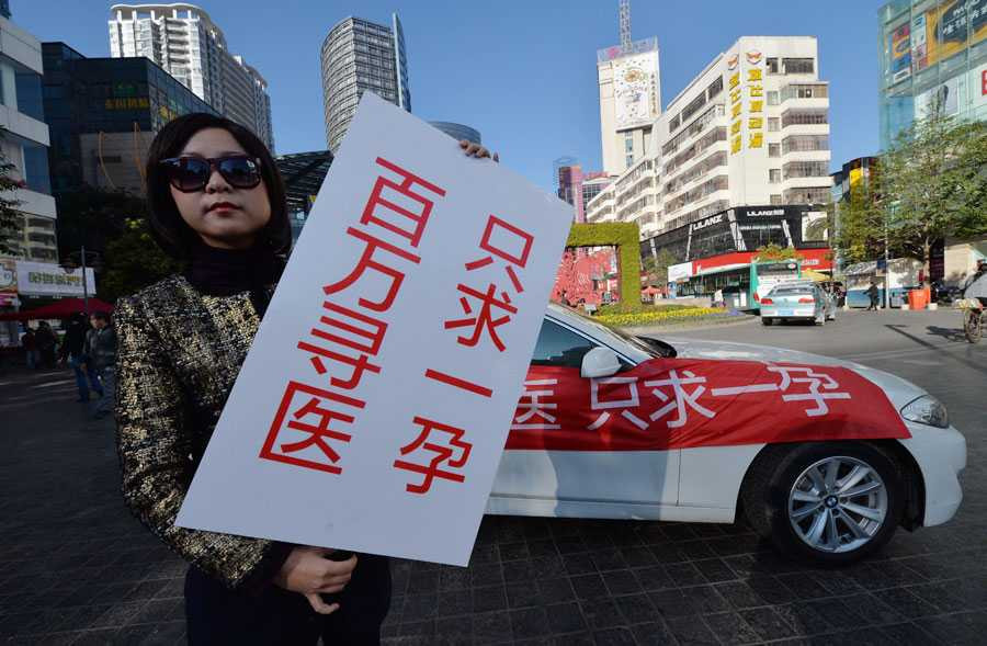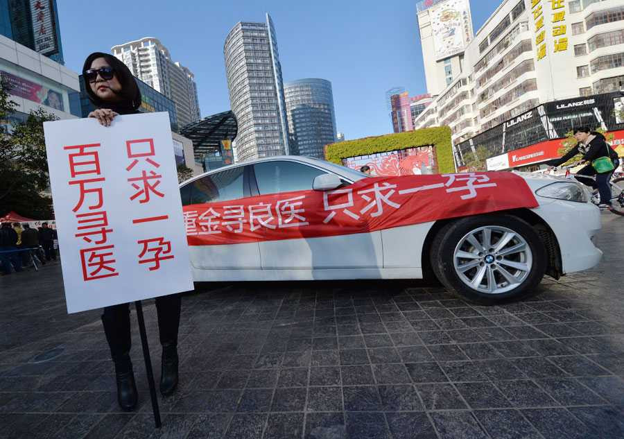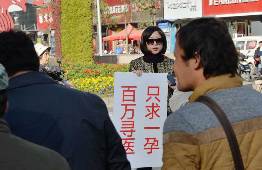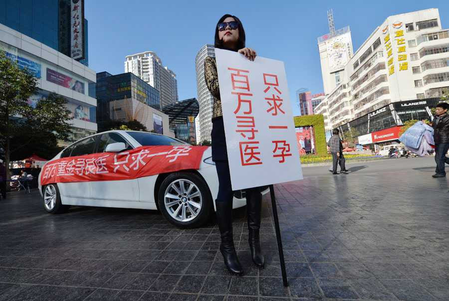 Mới đây, sự việc một phụ nữ hơn 30 tuổi đứng cầm tấm biển với nội dung "1 triệu nhân dân tệ cho bác sĩ nào có thể giúp tô có thai" ở Côn Minh (Vân Nam, Trung Quốc) khiến nhiều người ngạc nhiên. Thậm chí, nội dung này còn được giăng lên trên chiếc xe BMW của phụ nữ này.