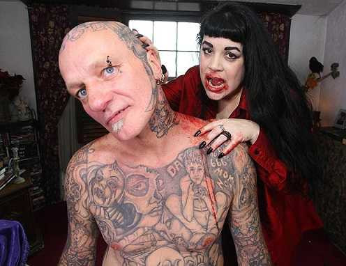 | Julia tạo dáng chụp hình rùng rợn bên một người hiến máu. |