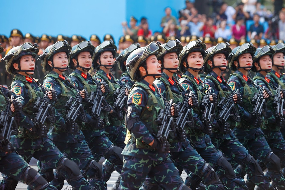 Khối nữ chiến sĩ Quân đội Nhân dân diễu binh, diễu hành kỷ niệm 50 năm Ngày Giải phóng miền Nam, thống nhất đất nước.