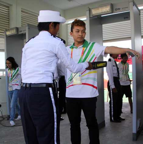 | Tất cả những địa điểm thi đấu ở SEA Games 27 đều được kiểm tra an ninh nghiêm ngặt (Ảnh: Tiểu Hàn) |