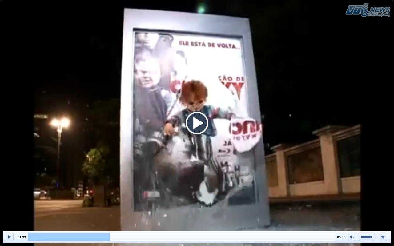 (VTC News) - Chương trình truyền hình 'The Curse of Chucky' của Brazil đã nghĩ ra 1 con búp bê ở trong biển quảng cáo rồi đập vỡ nó khiến cho người đi bộ sợ hãi