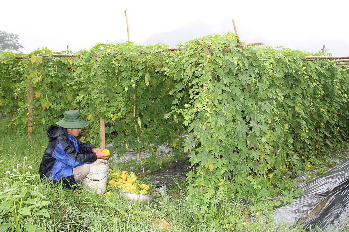 Thành viên HTX ở Hoà BÌnh thu hoạch mướp đắng. (Ảnh minh hoạ).