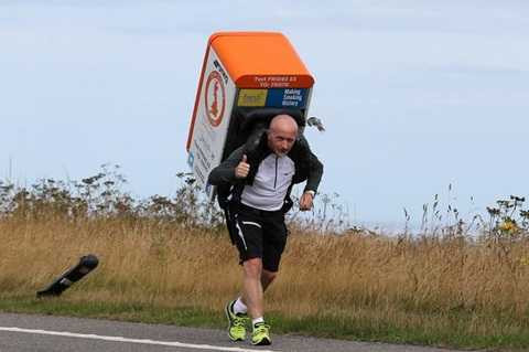 | Tony Phoenix – Morrison đã chạy quãng đường hơn 1000km với chiếc tủ lạnh 42,5kg trên lưng. |