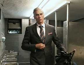 | Mark vào nhà vệ sinh công cộng để thay trang phục trước mỗi lần đi diễn. |