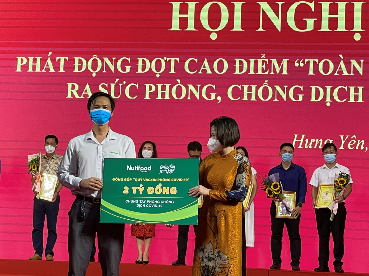 Trong chương trình phát động “Toàn dân đoàn kết, ra sức phòng chống dịch COVID-19” tại Hưng Yên vào ngày 18/6, Quỹ phát triển tài năng Việt của Ông Bầu đã trao tặng 2 tỷ đồng vào Quỹ phòng chống COVID-19 của tỉnh. Nguồn kinh phí tài trợ lần này do công ty cổ phần thực phẩm dinh dưỡng Nutifood (Nutifood) đóng góp thông qua Quỹ phát triển tài năng Việt với mong muốn được chung tay cùng người dân Hưng Yên vượt qua dịch bệnh, ổn định cuộc sống.