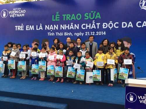 Đó cũng chính là lý do chương trình Quỹ Sữa “Vươn Cao Việt Nam” năm 2014 dừng chân ở Thái Bình, nhân kỷ niệm 70 năm ngày thành lập Quân đội nhân dân Việt Nam 22/12, dành sự yêu thương cho trẻ em bị nhiễm chất độc da cam/dioxin, nhằm cùng chung tay xoa dịu nỗi đau da cam cho các em.