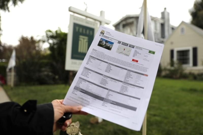 Một phụ nữ cầm tờ quảng cáo bán nhà tại California (Mỹ). (Ảnh: Reuters)