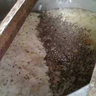 | Thùng nấu mứt bí cùng với ruồi - Ảnh: Người Đưa Tin |