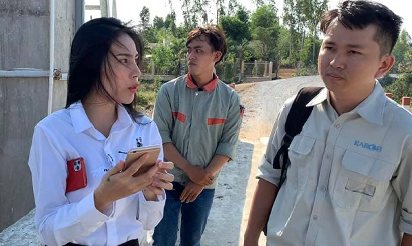 Thủy Tiên đi khảo sát địa điểm lắp máy lọc nước.