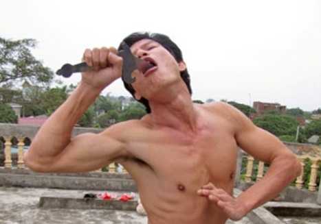 Có thể nuốt được 15 thanh kiếm dài 60cm, chọc kim loại sắc nhọn xuyên qua má, lưỡi, cũng như đập búa tạ vào đầu mà chẳng hề hấn gì. Để trở thành kỷ lục gia về thành tích nuốt kiếm, anh Nguyễn Đắc Điệu (xã Hồng Dụ, huyện Ninh Giang, Hải Dương) đã có một cơ duyên đặc biệt và quá trình luyện tập gian khổ.