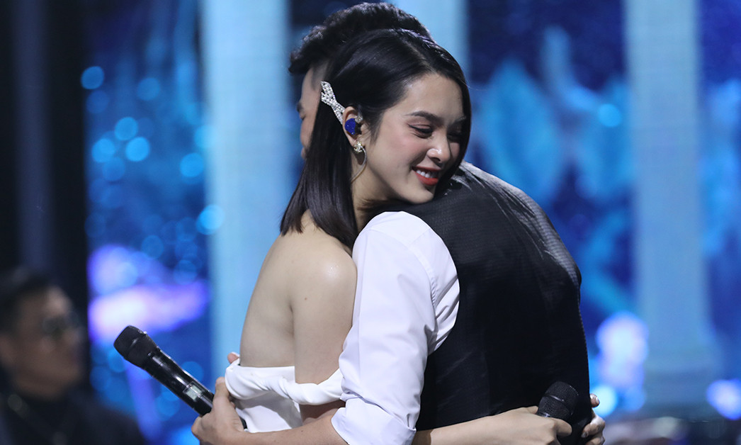 Quỳnh Lương tình tứ với Hồ Trung Dũng trên sân khấu.
