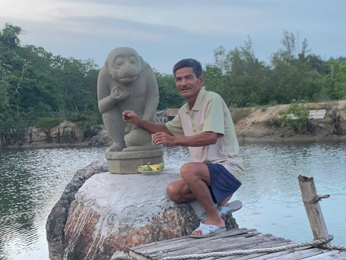 Trước đó, tượng thần khỉ Hanuman được ông Lục phát hiện khi đang ra biển câu cá. Theo ông Lục, tượng đá bị chìm dưới lớp cát, vị trí phát hiện cách bờ khoảng 50m, độ sâu 4m.