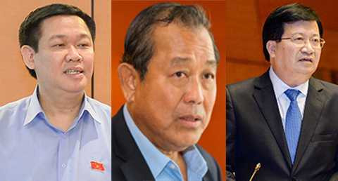 | 3 Phó Thủ tướng mới từ trái qua: Ông Vương Đình Huệ,ông Trịnh Đình Dũng và ông Trương Hòa Bình |