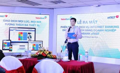 (VTC News) - Ngày 26/9 tại Hà Nội, VietinBank công bố ra mắt VietinBank eFAST - Ngân hàng điện tử dành cho khách hàng doanh nghiệp với nhiều dịch vụ trực tuyến nổi bật, lần đầu tiên được cung cấp bởi VietinBank và cũng là dịch vụ tiên phong của hệ thống Ngân hàng Việt Nam.