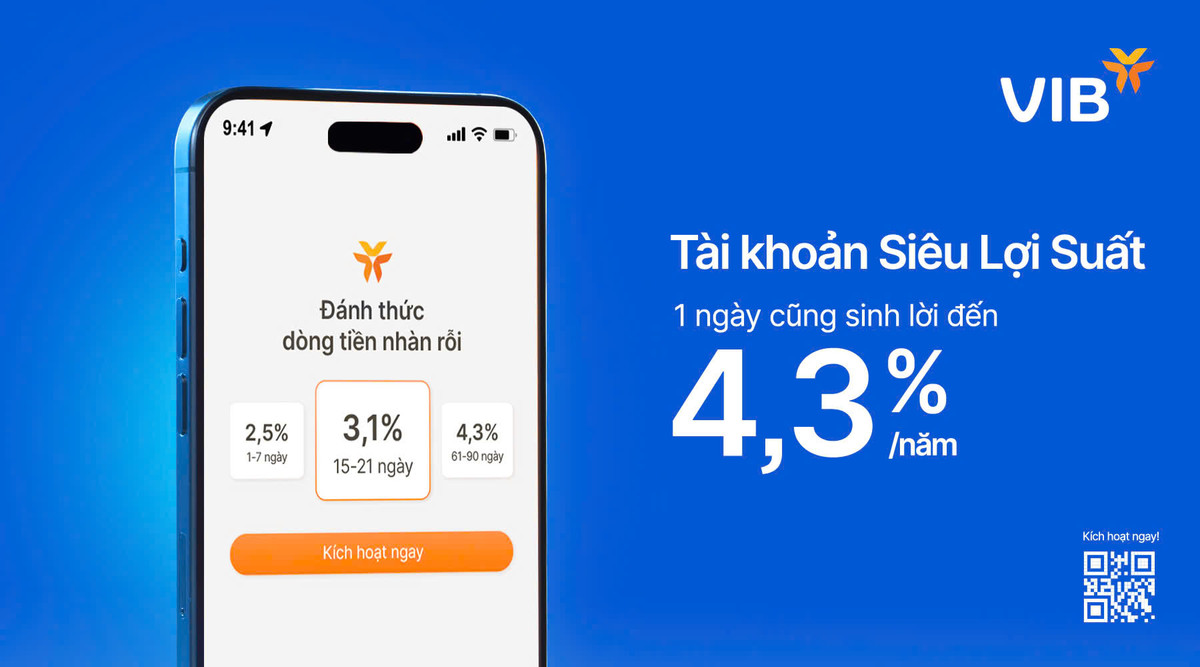 Với đặc tính 1 ngày cũng sinh lời, 1 chạm bắt đầu sinh lời, 1 bước rút tiền linh hoạt, tài khoản Siêu Lợi Suất của VIB mang đến lợi suất cao hơn đến 43 lần so với tài khoản thanh toán thông thường cho dòng tiền nhàn rỗi toàn xã hội, thay đổi hoàn toàn tư duy của khách hàng về cách sử dụng tài khoản thanh toán.