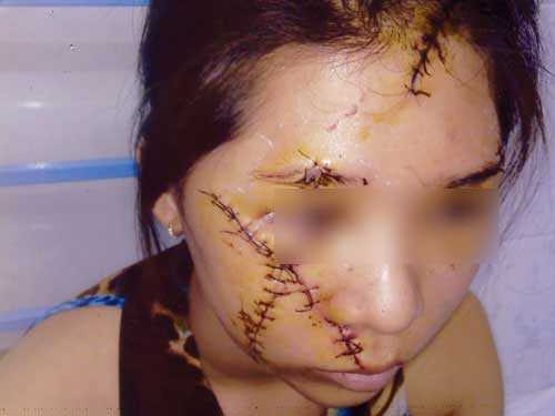| Khuông mặt chị Như sau khi bị rạch nát. |