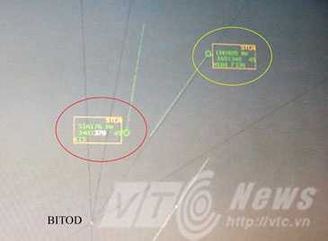 Vị trí hai chiếc máy bay khi hệ thống rada mặt đất cảnh báo - xuất hiện khung khung vuông xung quanh.