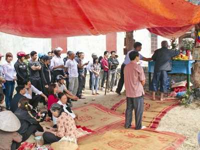 Một cụ già tự giới thiệu với tôi là “già làng” đứng lên cúng khấn gì đó. Sau đó mọi người thi nhau vái, bỏ tiền vào chiếc ban thờ, một số người còn nhờ cụ ông này khấn giúp với “thần rắn” và xin lộc từ thần.