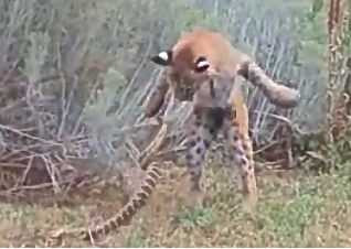 Rắn chuông tử nạn dưới nanh vuốt linh miêu