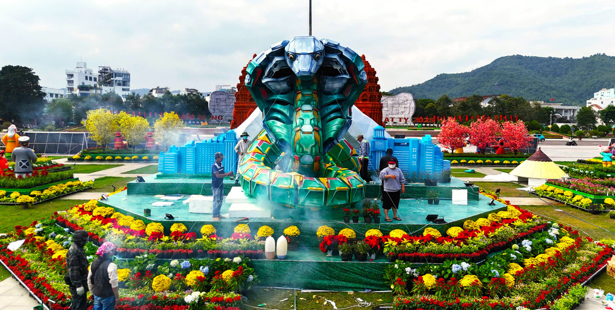 Khu vực vườn hoa trưng bày linh vật có chiều dài khoảng 120m, rộng 40m, được bố trí hơn 40.000 chậu hoa với hơn 30 loài hoa đa dạng màu sắc tạo hình hai linh vật rắn lớn với chiều dài trên 30m.