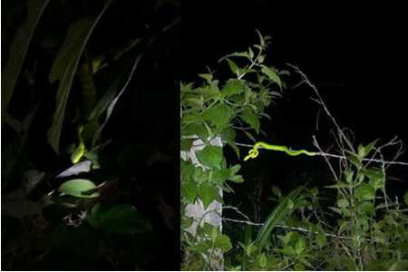 | Rắn lục đuôi đỏ bò quanh nhà dân vào ban đêm. |