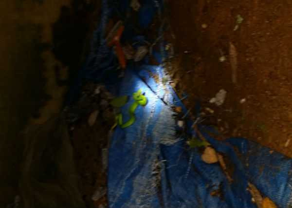| Con rắn lục bò vào vườn sát nhà ông Phạm Văn Vĩnh (xóm 1, Khánh Sơn) vào tối 18/10. |