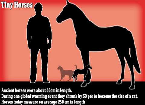 Trong quá khứ, loài ngựa chỉ có kích thước của một con chó nhỏ trong thời kỳ PETM. Và sau khi Trái Đất lấy lại được sự ổn định nhiệt độ như ngày nay thì chúng tăng kích thước trở lại.