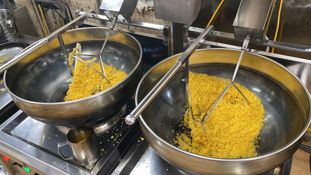 Máy móc giải phóng sức người, đảo cơm cũng đều hơn, tơi hơn và đượm hơn.