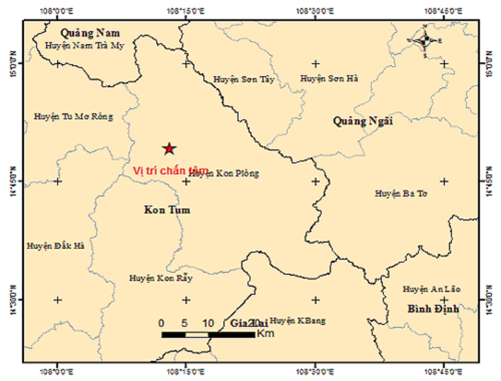 Ngày 15/4, Trung tâm báo tin động đất và cảnh báo sóng thần - Viện Vật lý địa cầu, cho biết vừa ghi nhận 3 trận động đất xảy ra vào rạng sáng cùng ngày tại huyện Kon Plông (tỉnh Kon Tum).