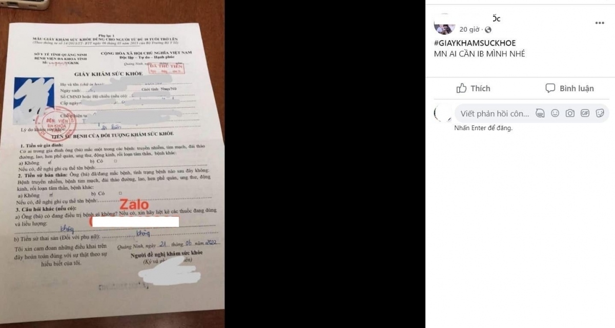Theo đó, từ đầu năm 2023 đến nay, do tình hình kinh tế khó khăn, lợi dụng nhu cầu người dân cần tìm kiếm việc làm, nộp hồ sơ xin việc tại các khu công nghiệp trên địa bàn tỉnh Quảng Ninh, một số đối tượng đã đăng tải nhiều bài viết, bình luận về việc rao bán, nhận làm giấy khám sức khỏe của bệnh viện Đa khoa tỉnh Quảng Ninh với chi phí rẻ, tiết kiệm thời gian không cần đến khám trực tiếp.