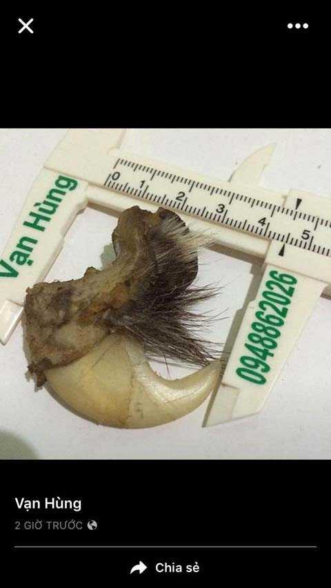 Đặc biệt, để tạo niềm tin, tài khoản facebook Vạn Hùng còn đăng nhiều hình ảnh chụp nguyên cả tay hổ. Không chỉ vậy, địa chỉ facebook này còn khắc số điện thoại, tên Vạn Hùng lên thước kẹp đo kích thước móng để “khách” tiện liên lạc, mua bán.