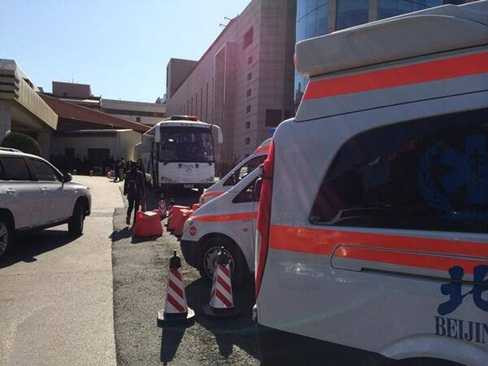 | Xe cấp cứu xuất hiện ở khách sạn Bắc Kinh, nơi có thân nhân hành khách MH370 đang ngóng tin |