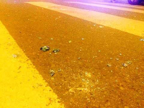 | Hiện trường văng nhiều mảnh thủy tinh vỡ |