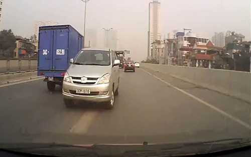 Những hình ảnh vi phạm được camera hành trình ghi lại cho thấy, chiếc xe ô tô hiệu Inova mang BKS 30M - 1618 vô tư luồn lách ngược chiều giữa tuyến đường được quy định tốc độ 80km/h.