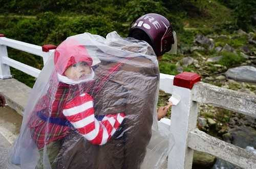 Dưới cái rét cắt da cắt thịt của vùng cao Sa Pa, người đàn ông vẫn tỉ mỉ sơn cầu. Trên người anh khoác tấm áo mưa mỏng trùm kín cô con gái đang nằm trọn trên lưng cha.