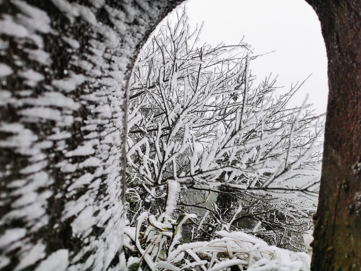 Sáng nay, băng giá phủ trắng đỉnh Mẫu Sơn. (Ảnh: Nông Đức Thọ)