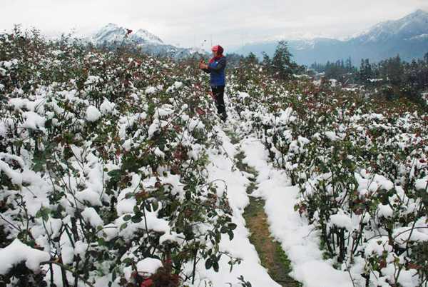 | Một vườn hoa hồng bị tuyết vùi lấp ở Lào Cai. Ảnh: Báo Lào Cai |