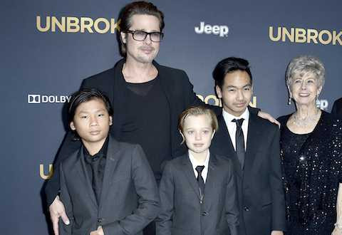 Pax Thiên cùng Brit Pitt và 2 anh em Maddox, Shiloh trong sự kiện ra mắt bộ phim "Unbroken" vào tháng 12/2014