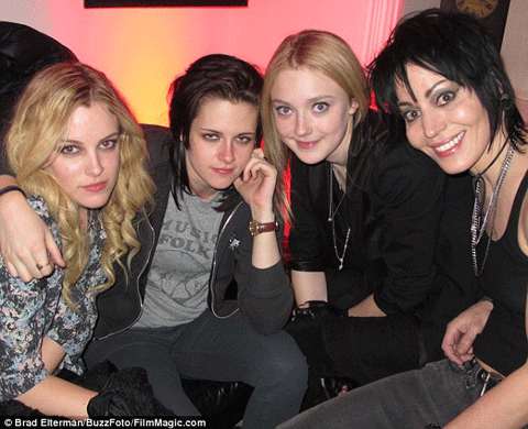 | 4 diễn viên trong phim The Runaway, Riley (bên trái) chụp ảnh thân thiết với Kristen. |