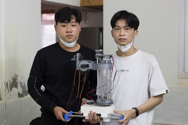 “Vấn đề trọng tâm của chúng em đặt ra để lên ý tưởng là làm thế nào để khi lấy mẫu tránh việc lây nhiễm chéo, giảm bớt gánh nặng về thể lực cho lực lượng y tế. Từ đó, chúng em xây dựng ý tưởng và bắt tay vào chế tạo robot lấy mẫu test COVID-19 dưới sự hỗ trợ của thầy cô trong trường”, Hùng chia sẻ.