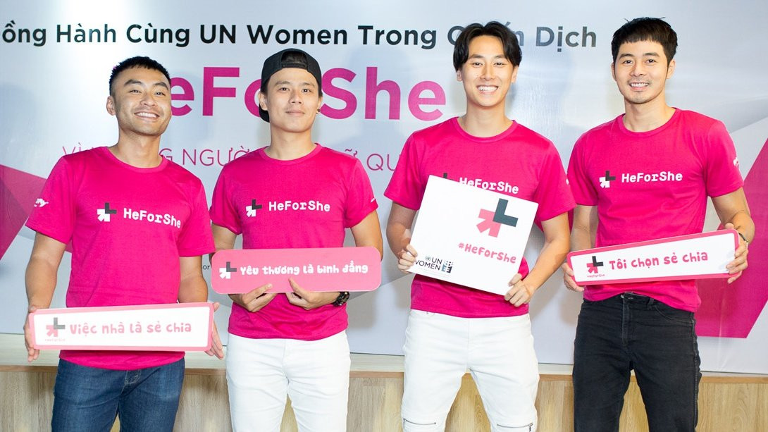 Các nam nghệ sĩ đã không ngần ngại mặc áo phông màu hồng, hay bất ngờ hơn là thử những đôi giày cao gót màu hồng, vốn được "mặc định" là dành cho phụ nữ để cùng thể hiện cam kết thúc đẩy bình đẳng giới, chấm dứt phân biệt đối xử và bạo lực giới.