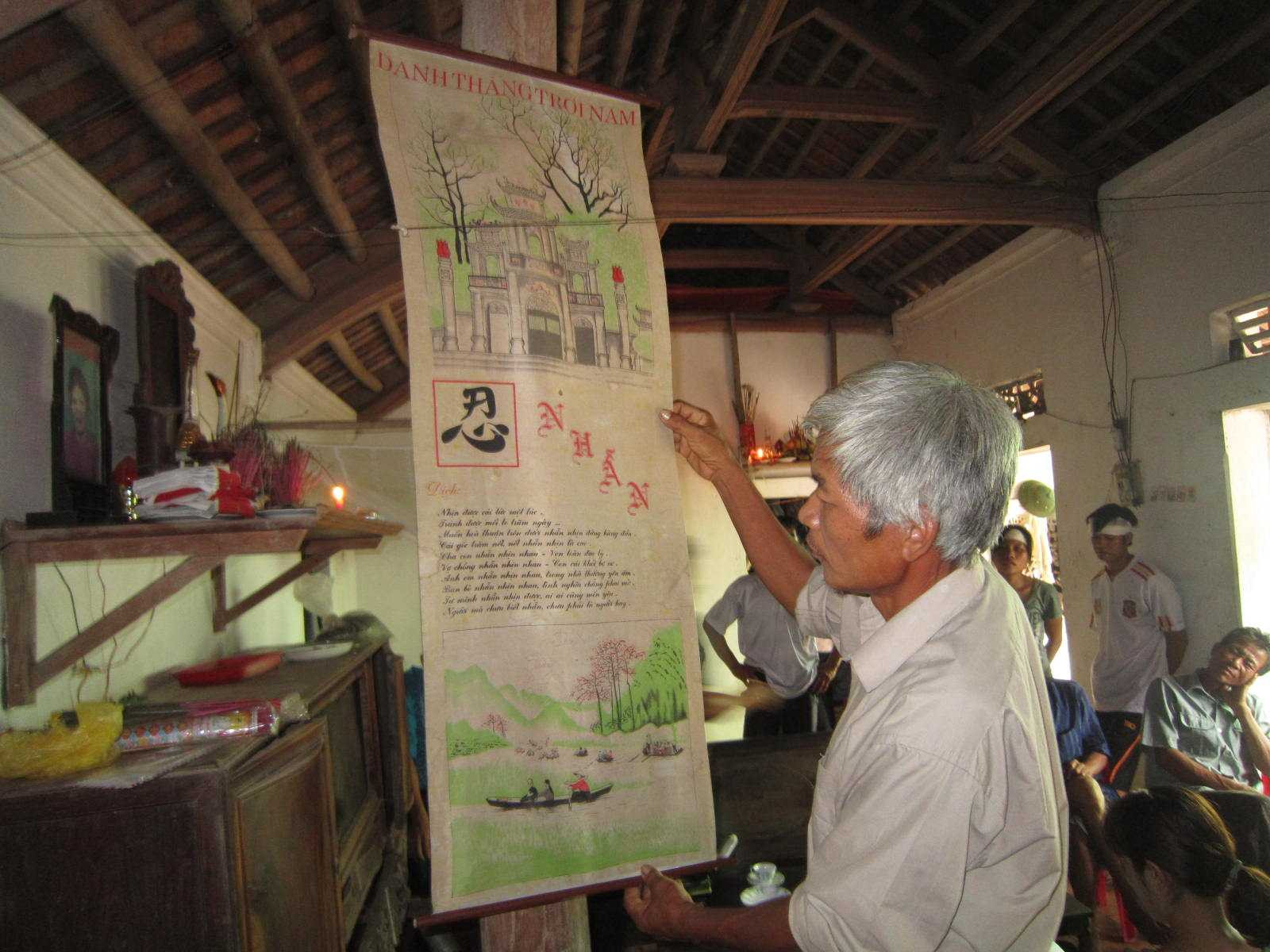 Kỷ vật duy nhất của con người đầy tính vị tha Trần Hữu Hiệp là một bức tranh đất tổ Đền Hùng kèm chữ "Nhẫn" viết kiểu thư pháp.